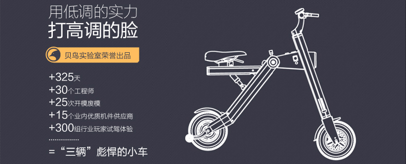 贝鸟K1智能便捷车是浙江贝鸟电动车有限公司设计师巅峰新作,它改变了传统电动车外形笨重、难移动的缺点,外观时尚轻巧,一键折叠、轻巧便携,随拿随走。