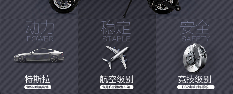 它采用超时尚外观设计,整车采用“K”型流线动感设计;全身98%航空铝合金,轻巧稳固;强劲动力,特拉斯18650同款锂电池;进口隐藏避震,更加安全舒适;无刷电机,承载能力强,低碳环保。同时,还能做到1秒连手机,能解锁、能定位、能导航、能记录,核心技术一站式解决。