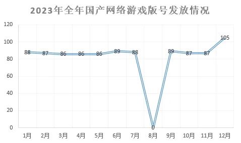 “稳定”是2023年版号的重要特点。一整年中,除了8月之外,每个月都有版号发放,数量也维持在87个左右。12月则有明显提升,达到了105个。