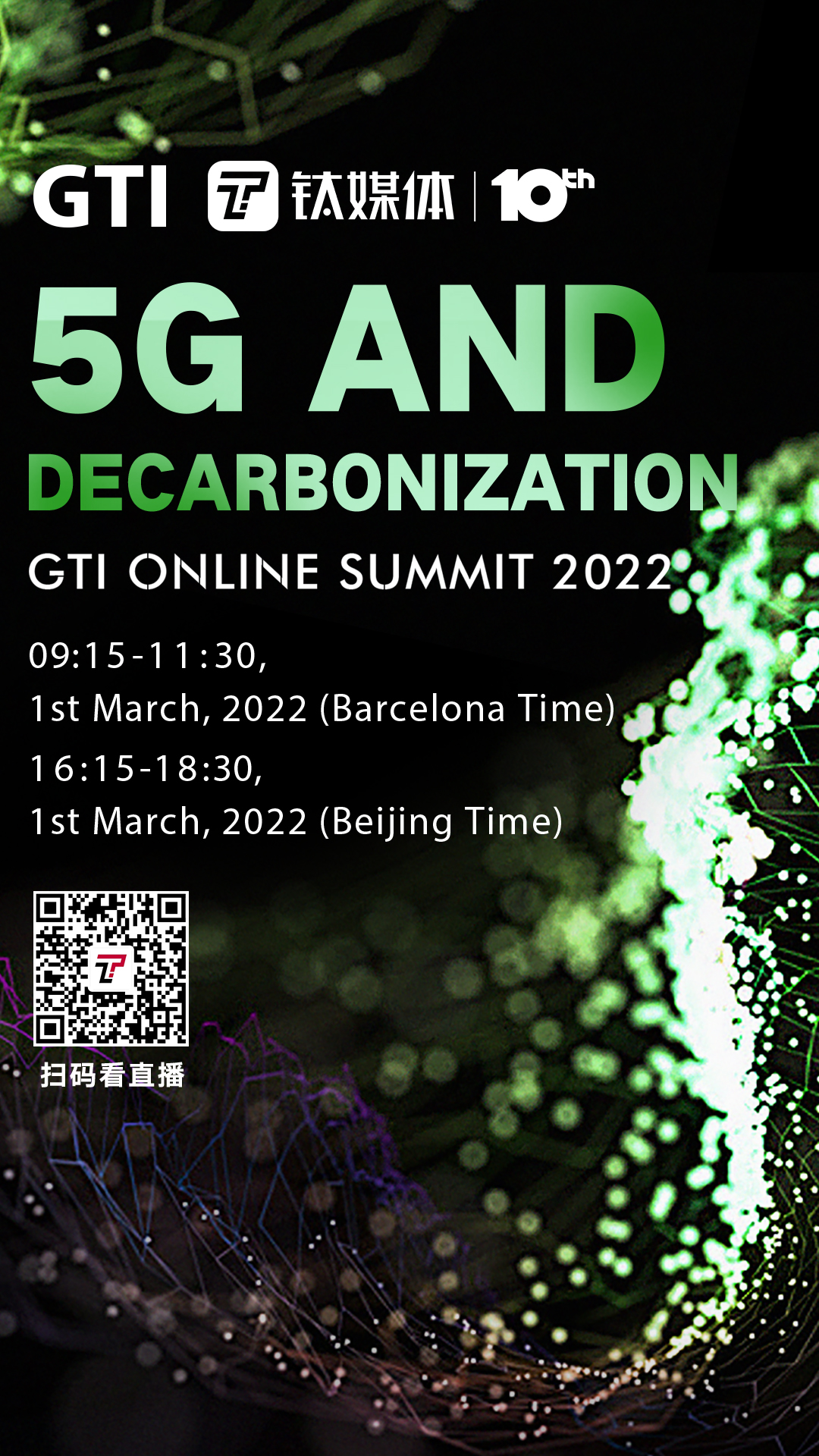 2022年GTI线上国际产业峰会,以“5G创新助力绿色低碳发展”为主题,分享全球5G战略规划,探讨技术创新如何助力各行业低碳发展,推动全球绿色可持续发展。