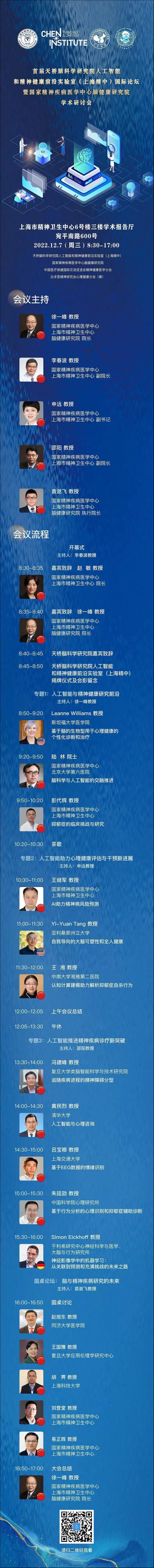 为促进精神健康医学实践及研究的国际性学术交流,由天桥脑科学研究院人工智能和精神健康前沿实验室(上海精中)和国家精神疾病医学中心脑健康研究院共同主办,中国医疗保健国际交流促进会精神健康医学分会、白求恩精神研究会心理健康分会(筹)联合承办的首届国际论坛即将召开。